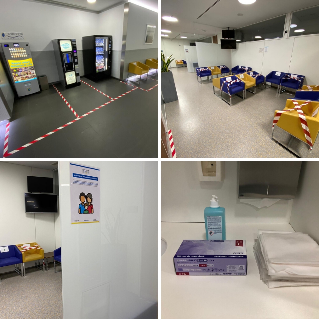 → Eliminado toda decoración y elementos adicionales de las salas de espera, zonas comunes y zonas de trabajo.